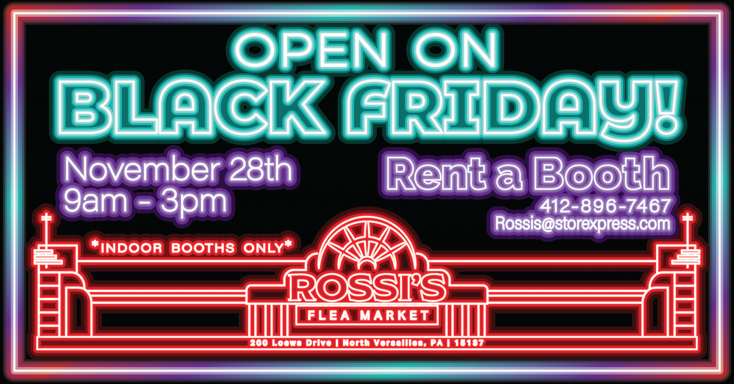 Rossi’s Flea Market Is OPEN on Black Friday. Join Us November 28th Get ready. Rossi’s Flea Market is officially open on Black Friday.Kick off the holiday weekend with treasure hunting, unique vendors, one-of-a-kind gifts, and the full indoor flea market experience. Whether you are shopping or selling, this is the perfect place to start your …